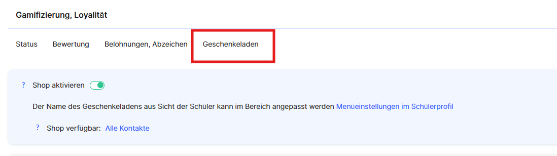 Detaillierte Informationen zur Konfiguration des Geschenkeladens sind in einem separaten Artikel beschrieben.