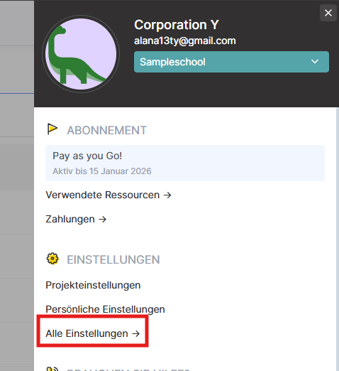 Beginnen Sie, indem Sie auf das Profilsymbol in der oberen rechten Ecke der Plattform klicken. Wählen Sie anschließend Einstellungen → Alle Einstellungen → Team. Dies ist der Bereich, in dem Sie Ihr Team erstellen und verwalten.