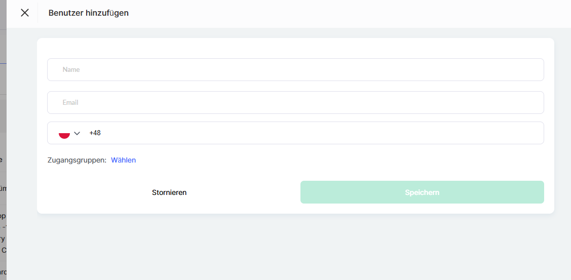 Wenn Sie einen Benutzer hinzufügen, können Sie eine Zugriffsgruppe auswählen, z. B. eine mit vollständigem Zugriff, oder eine benutzerdefinierte Gruppe mit teilweisem Zugriff auf bestimmte Bereiche des Dashboards erstellen. Sie können einen Benutzer auch ohne Zuweisung zu einer Gruppe hinzufügen und den Zugriff zu einem späteren Zeitpunkt konfigurieren.