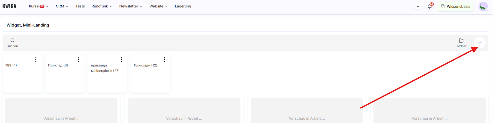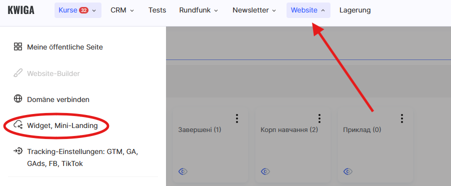 Gehe zum Menü Website → Widget, Mini-Landing.
