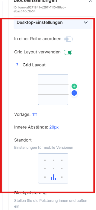 Dieser Block ermöglicht es dir, das Erscheinungsbild des Formulars für große Bildschirme anzupassen und ein korrektes Alignment sowie eine nahtlose Integration in deine Seite sicherzustellen.