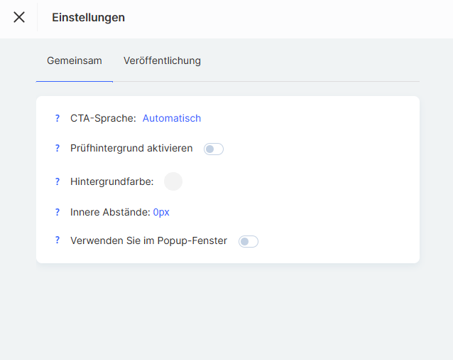 Allgemeine Widget-Einstellungen und Veröffentlichung