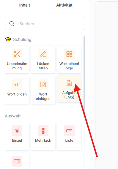 Wählen Sie den Typ LMS-Aufgabe aus.