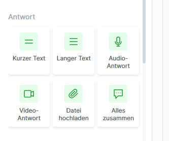 Textantwort, Frage, Audio oder Video.