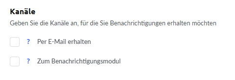 Hier können Sie den Empfang von Benachrichtigungen über die Plattform-Glocke oder per E-Mail aktivieren und darunter auswählen, welche spezifischen Benachrichtigungen Sie erhalten möchten.