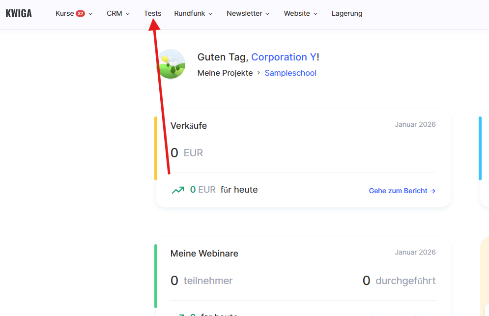 Gehen Sie zum Menü Quizzes.
