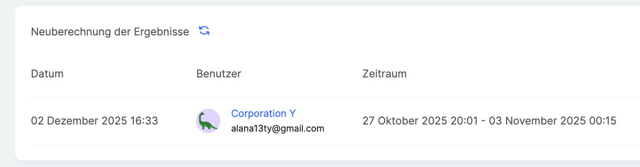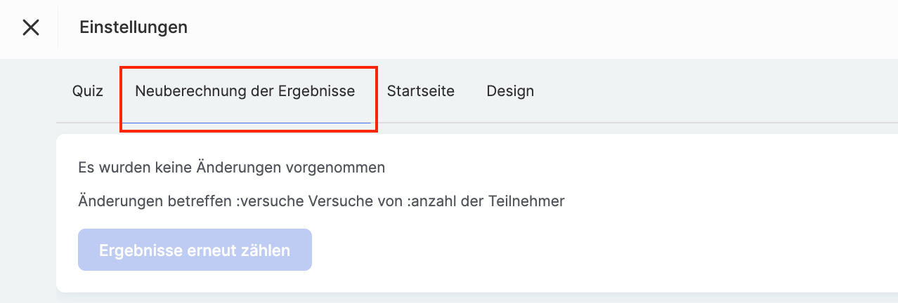 Durch Klicken auf die Schaltfläche „Ergebnisse neu berechnen“ aktualisiert das System im Hintergrund alle Versuche, die bis zum Zeitpunkt der letzten Änderung abgeschlossen wurden.