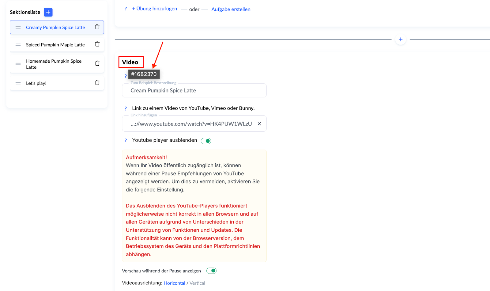 Notieren Sie sich diese Zahl – es handelt sich um die Video-ID. Jetzt können Sie Zeitstempel erstellen!