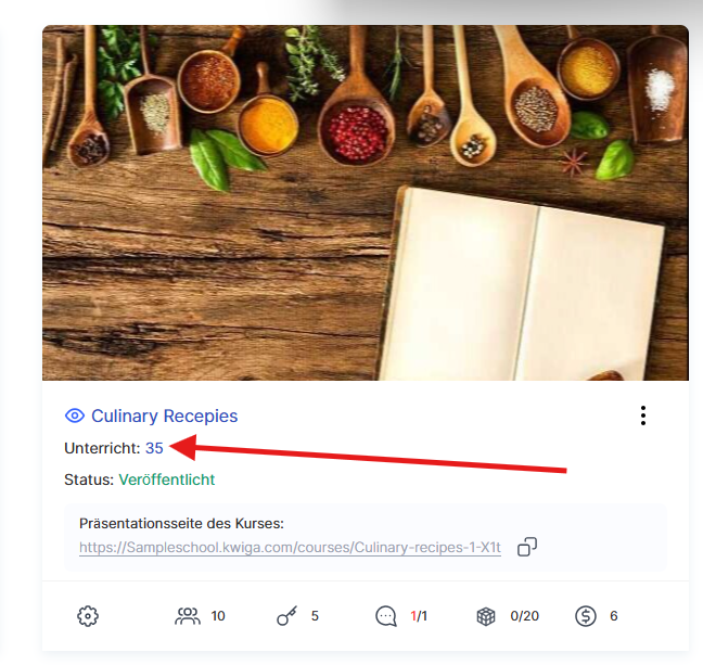 Du kannst den Link zur Lektion direkt in derselben Registerkarte unter den Lektionseinstellungen kopieren.