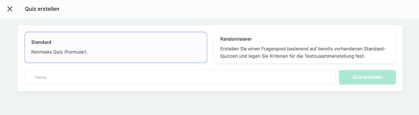 Wähle anschließend Standard-Quiz, gib einen Namen ein und beginne mit der inhaltlichen Gestaltung.