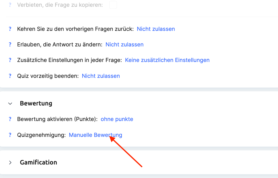 Für Aufgaben, die eine manuelle Überprüfung erfordern, musst du in den Quiz-Einstellungen die Option Genehmigung — durch Tutor aktivieren.
