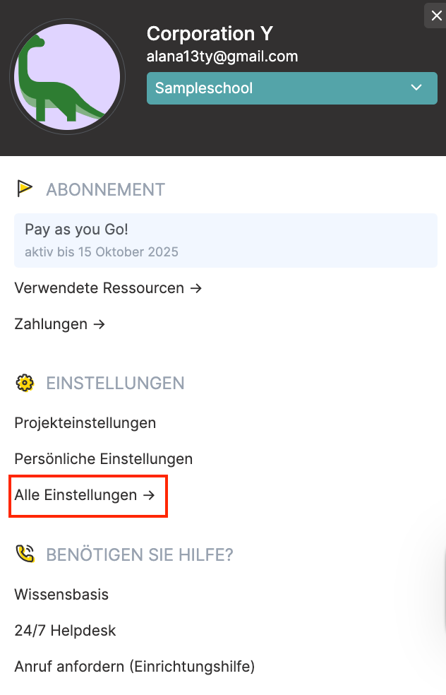Um auf die Einstellungen zuzugreifen, klicken Sie auf das Avatar-Symbol, wählen Alle Einstellungen und dann Studentenprofil. Dort stehen vier Hauptbereiche zur Verfügung, um den Lernprozess individuell zu gestalten.