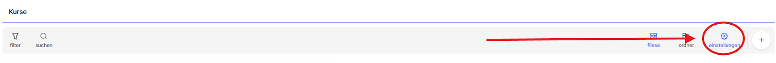 Dazu gehe im Menü Kurse zu einem der Bereiche im Block Produkte – zum Beispiel Kurse – und öffne anschließend die Einstellungen.
