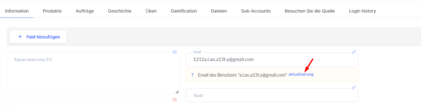Bitte beachte: Das Ändern der E-Mail-Adresse in der Kontaktkarte des Kunden ändert nicht den Login des Kunden! Diese Aktion aktualisiert lediglich die Adresse, über die Benachrichtigungen versendet werden.
