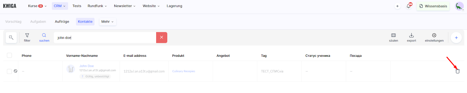 Gib dazu die falsche E-Mail ein, klicke auf das Papierkorbsymbol und bestätige das Löschen.