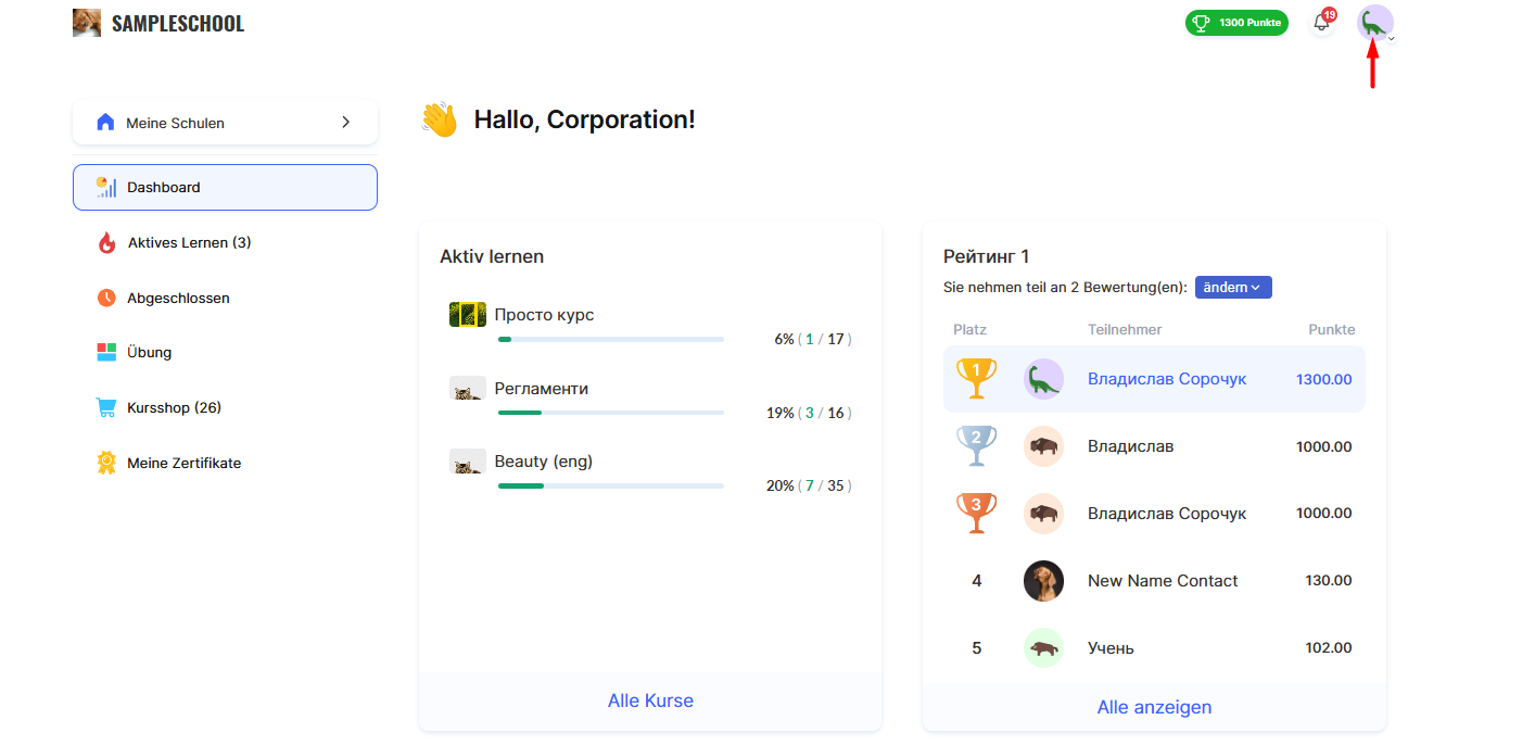 Der Wechsel in das Studenten-Konto ermöglicht dir, zu sehen, wie dein Profil für Kursteilnehmer erscheint. Das ist nützlich, um zu überprüfen, wie deine Materialien, die Kursstruktur oder andere Lernelemente angezeigt werden.
