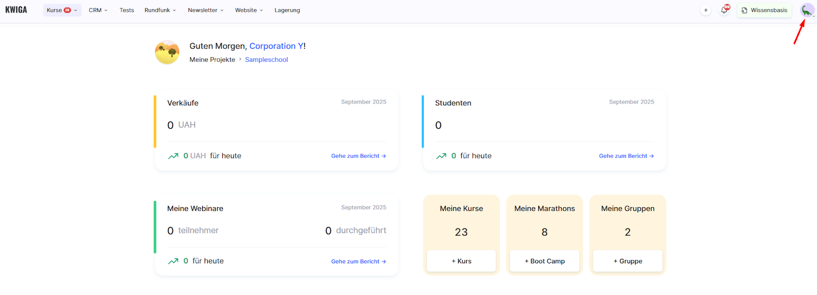 Klicke oben rechts im Dashboard auf dein Profil-Avatar.