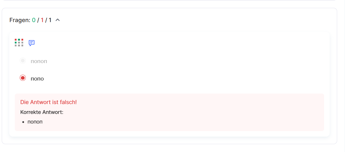 ● Rot – ein Versuch wurde unternommen, aber die Antwort war falsch;