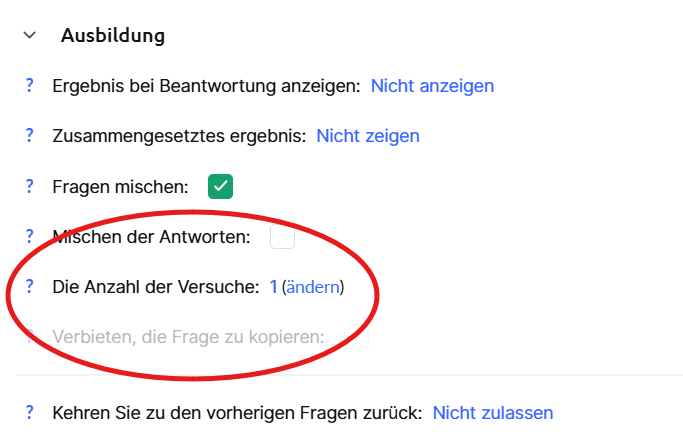 💡 Tipp: Wenn Sie eine unbegrenzte Anzahl von Versuchen erlauben möchten, geben Sie 999 ein.