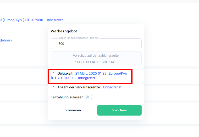 Aktionsangebote auf der Kwiga-Plattform ermöglichen es Ihnen, Rabatte auf Ihre Produkte oder Preismodelle mit klar definierten Bedingungen anzuwenden. Sie können zeitlich begrenzte Rabatte oder Rabatte mit begrenzter Anzahl an Käufen festlegen und so einen zusätzlichen Anreiz für Nutzer schaffen. Nach Ablauf der Aktion kehrt der Preis automatisch zum Standardtarif zurück.