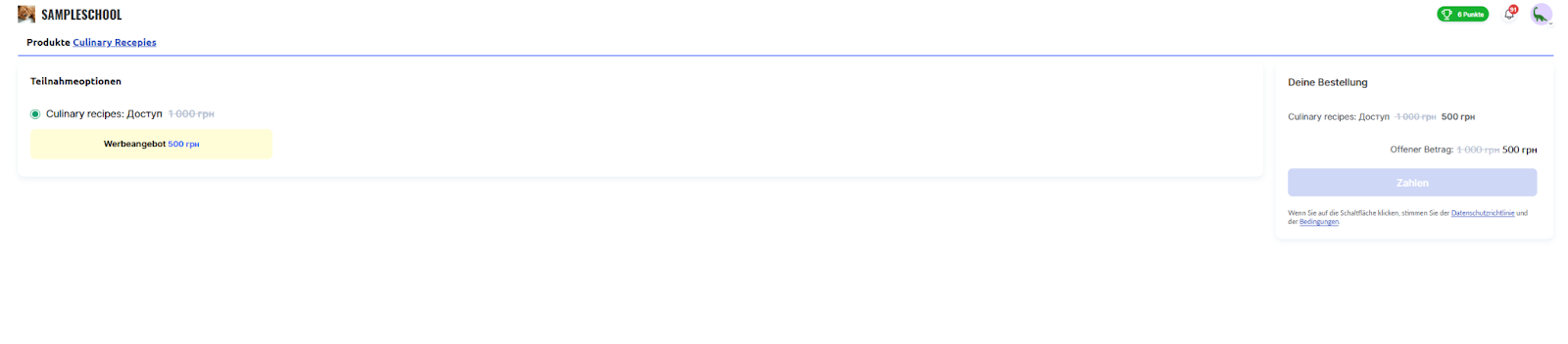 So erscheint es für Teilnehmer im Checkout