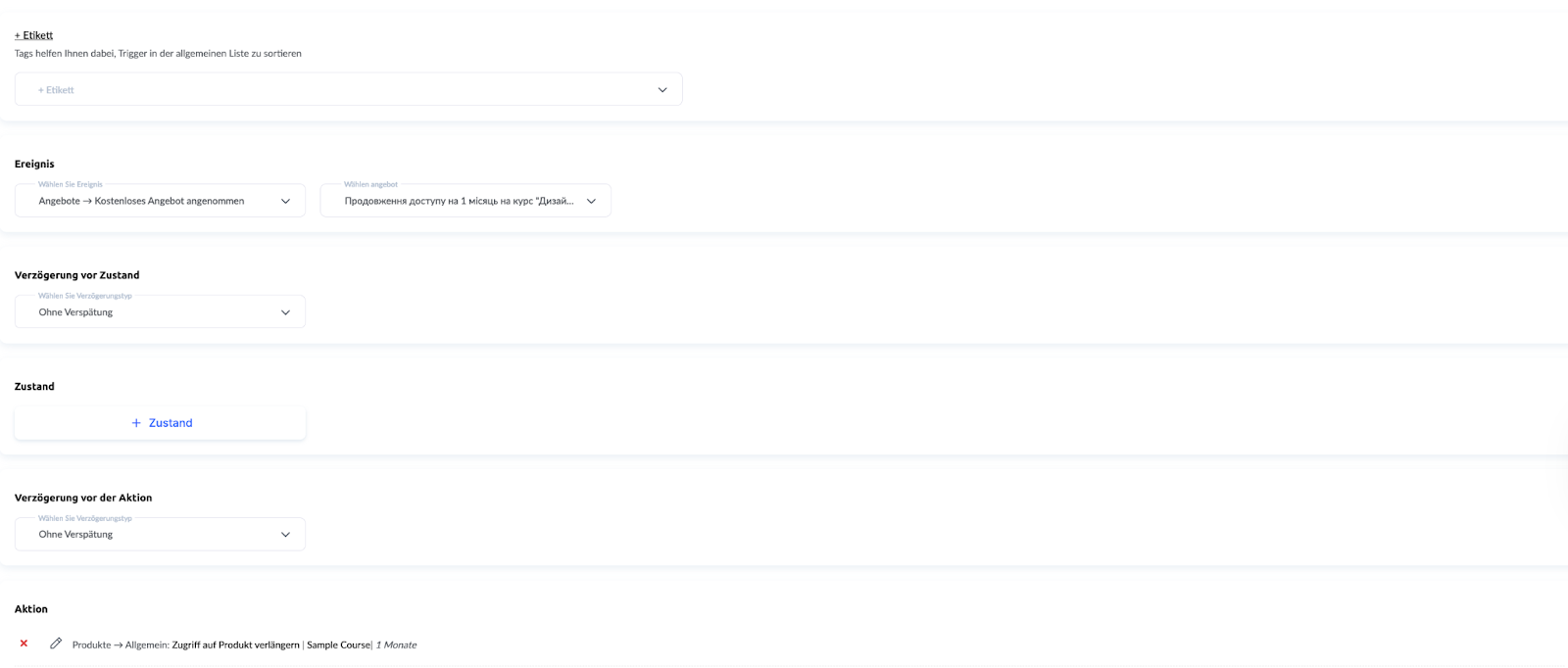 Eine Automatisierung erstellen, die nach erfolgreicher Zahlung ausgelöst wird und den Zugriff auf den Kurs für den erforderlichen Zeitraum verlängert.