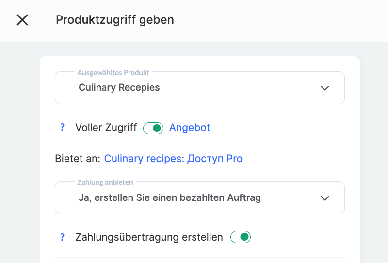 Manchmal ist es notwendig, den Zugriff auf ein Produkt für einen bestimmten Teilnehmer zu ändern, der bereits aktiven Zugriff hat. Zum Beispiel möchte er auf einen erweiterten Tarif mit zusätzlichen Funktionen upgraden oder umgekehrt zu einem einfacheren Paket wechseln. Wie lässt sich das schnell und ohne unnötigen Aufwand erledigen?