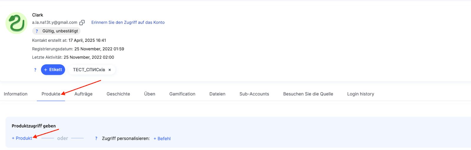 2. Öffnen Sie die Kontaktkarte des Teilnehmers und wechseln Sie zur Registerkarte Produkte.