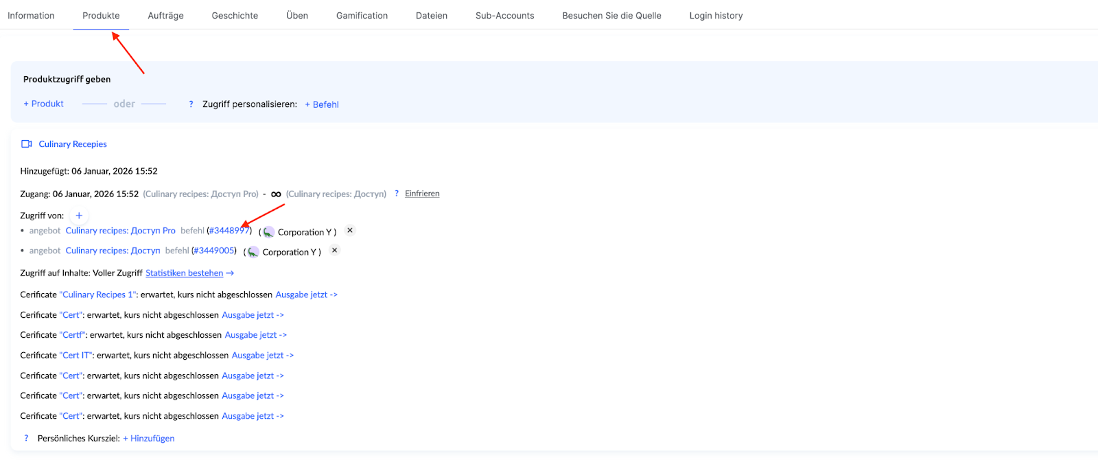 Wenn der Teilnehmer bereits Zugriff auf das Produkt hat, dieser Zugriff jedoch geändert werden muss, gibt es zwei mögliche Fälle: