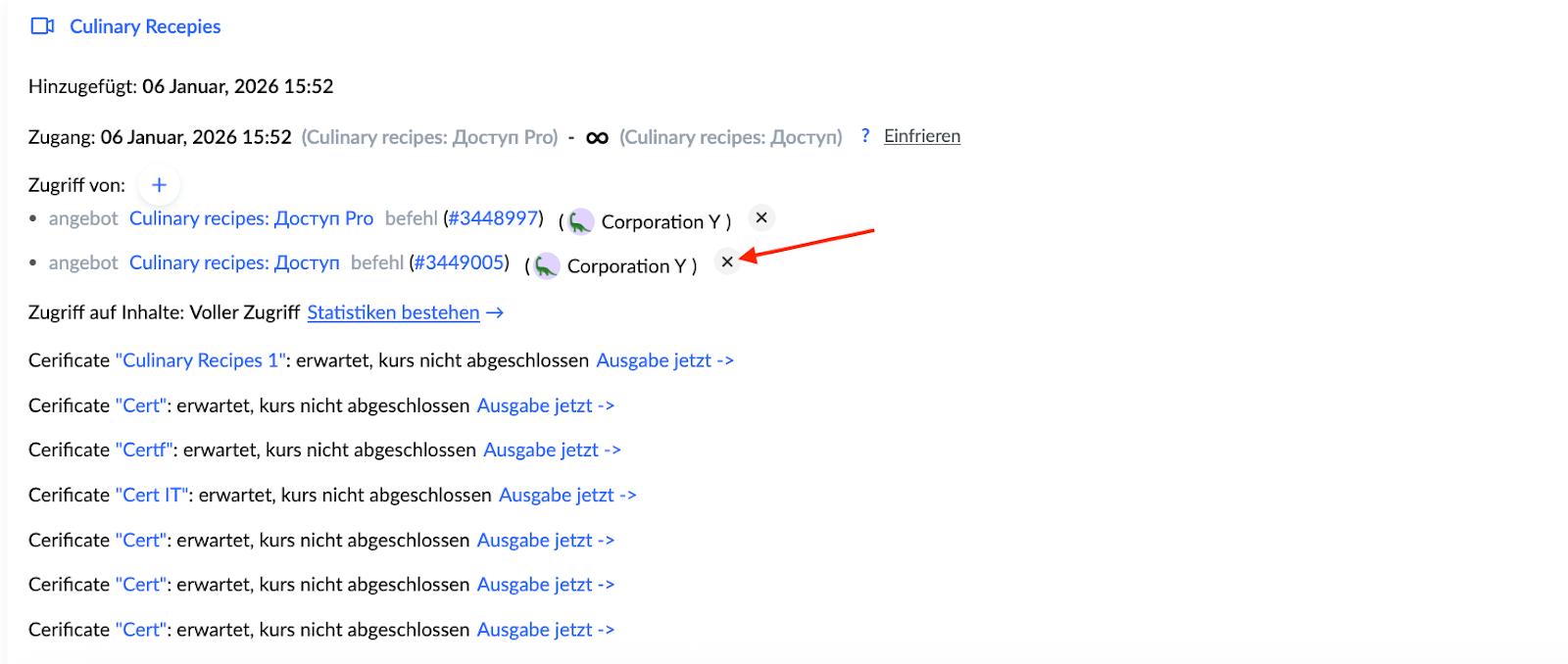 5. Nachdem der neue Tarif hinzugefügt wurde, können Sie den alten Zugriff löschen.