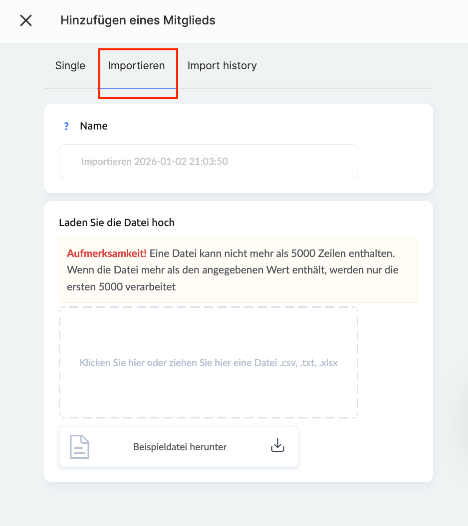 Die Importdauer hängt von der Anzahl der Teilnehmenden ab. Beispielsweise kann der Import von 1.000 Kontakten mehrere Minuten dauern. Ein separater Artikel enthält weitere Details zum Importprozess.