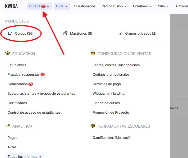 Abre el menú Cursos en la parte superior.