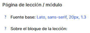 La principal ventaja de este bloque es que la información aparece automáticamente en todas las páginas de lecciones — no es necesario añadirla manualmente a cada una por separado.