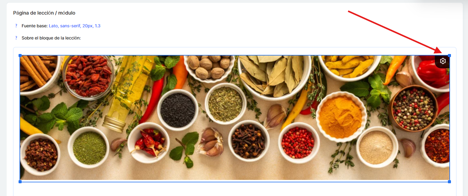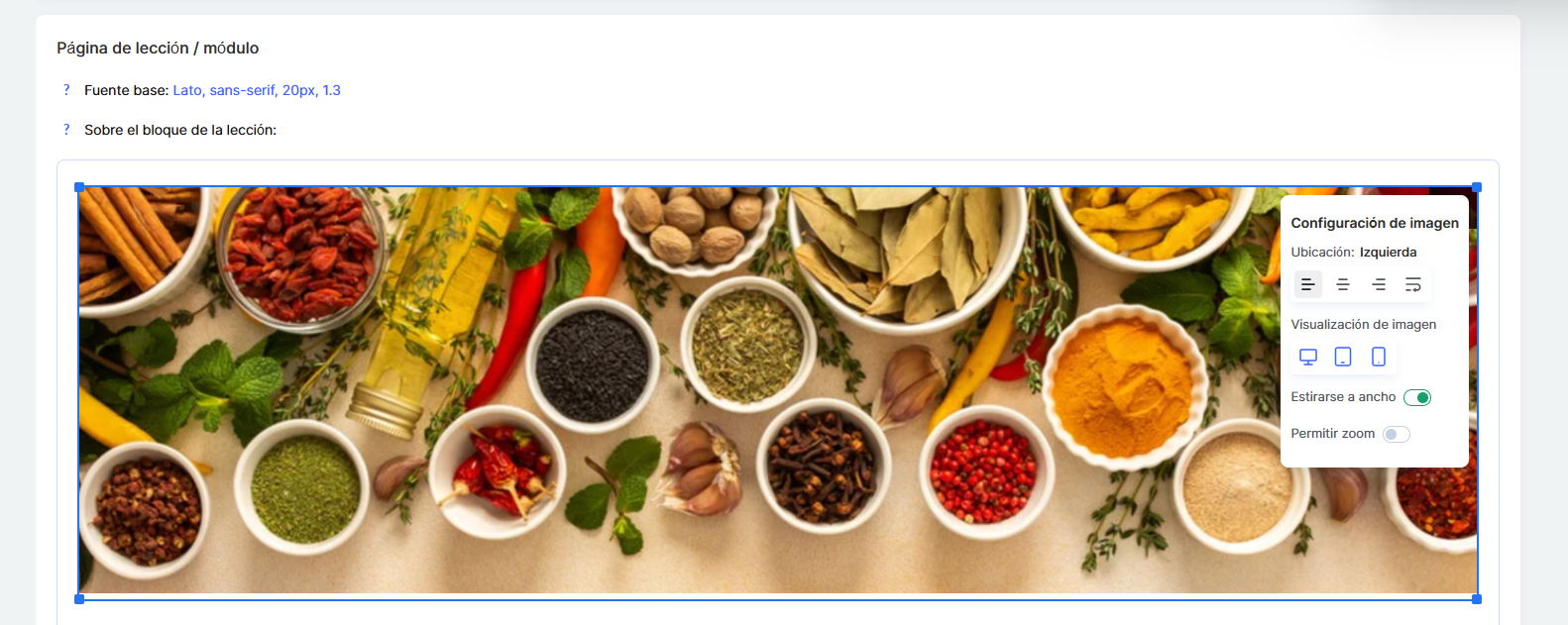 Si agregas una imagen al bloque sobre las lecciones, puedes ajustar cómo se mostrará en los distintos dispositivos.