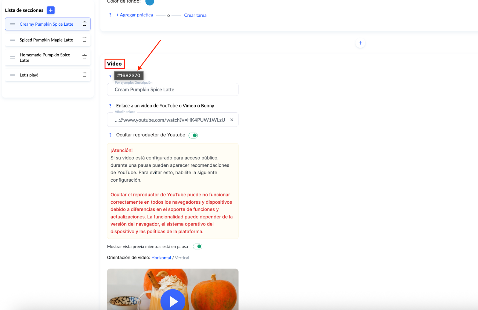 A continuación, deberá determinar el identificador único del vídeo en Kwiga. No importa desde dónde se haya subido el vídeo (YouTube, Storage, Vimeo), siga estos pasos: