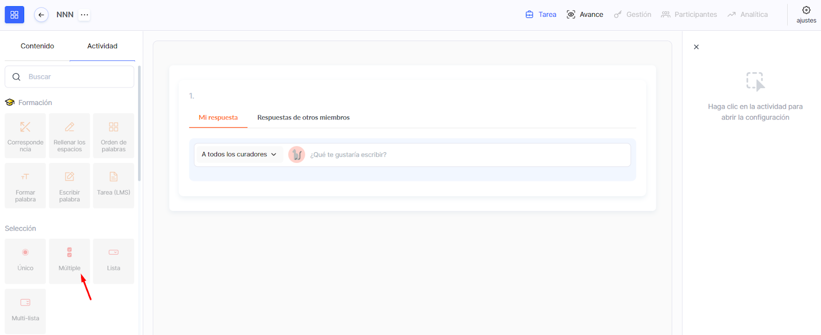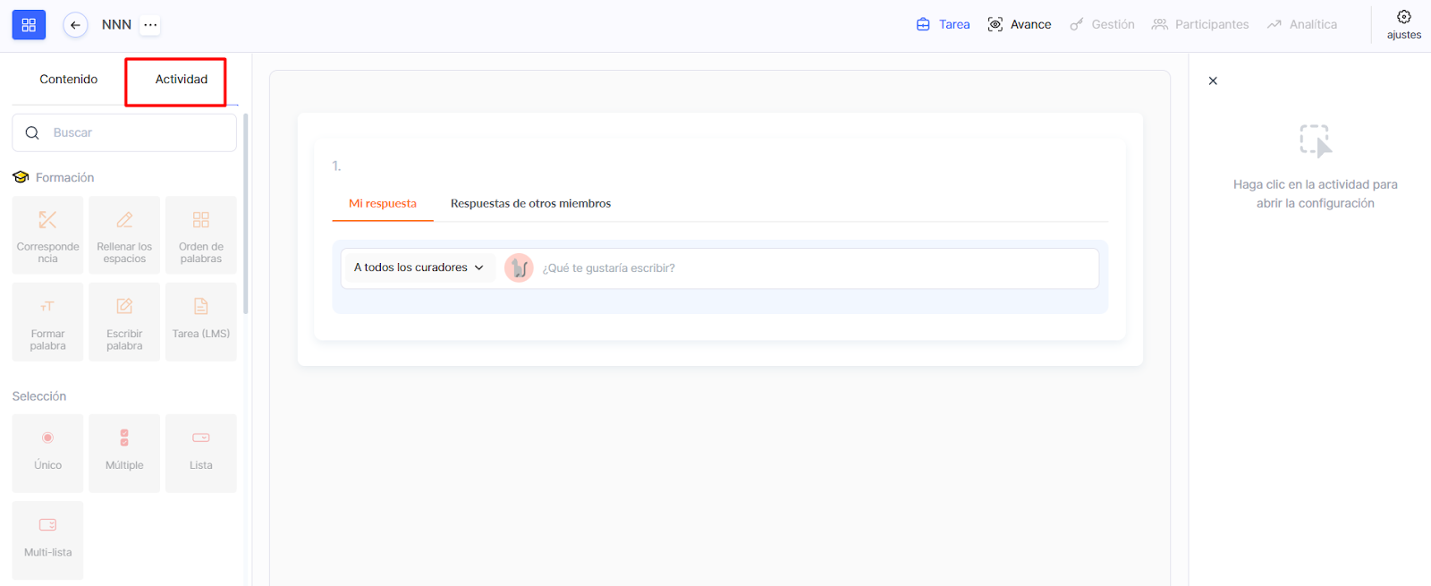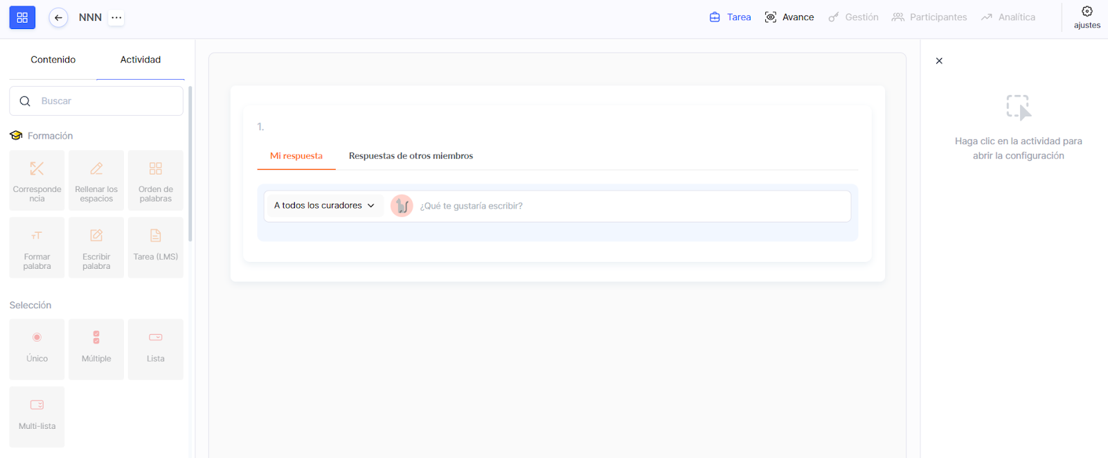 Recomendación: Si no se trata de un test o encuesta y necesitas una respuesta abierta, recomendamos usar el tipo Tarea (LMS).