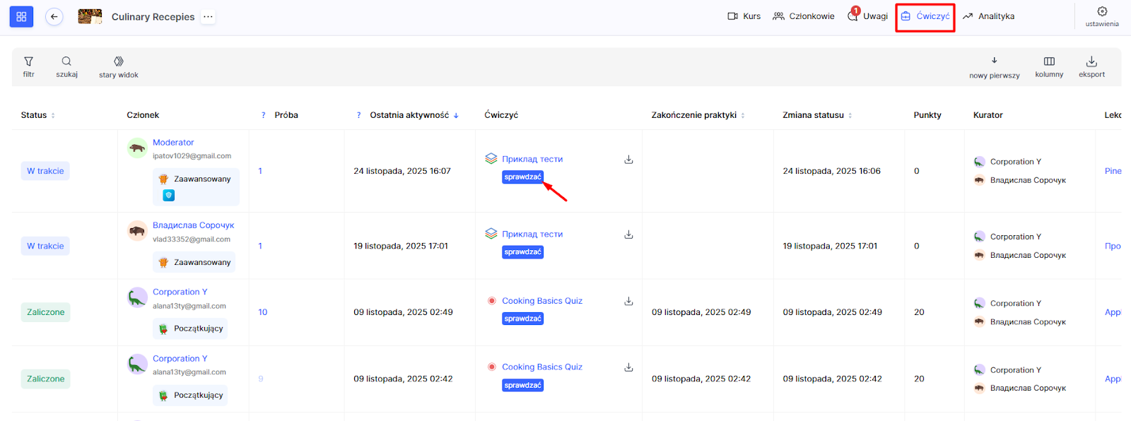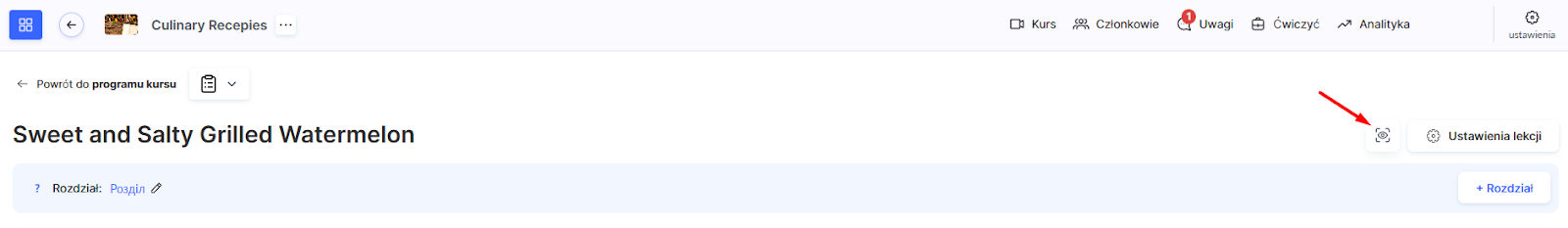Después de crear la tarea, añádela a la lección mediante el constructor de lecciones. Para ello, encuentra el curso en el menú Cursos y abre la lección correspondiente. Hay un artículo aparte que explica este proceso en detalle.