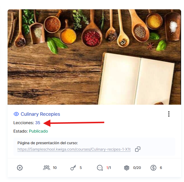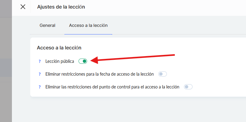 Una vez habilitada, la lección será accesible para todos los usuarios de la plataforma mediante un enlace. Puedes copiar el enlace de la lección directamente desde la misma pestaña en la configuración de la lección.