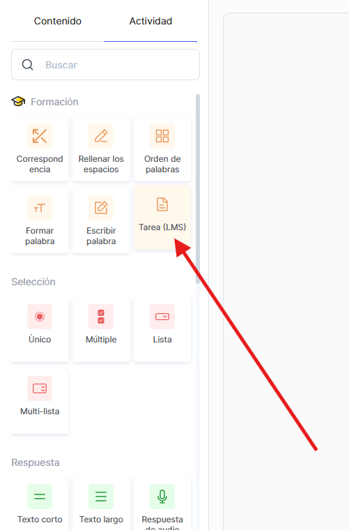 Selecciona el tipo de Tarea LMS.