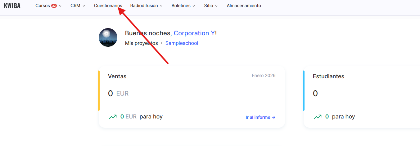 Ve al menú Cuestionarios.