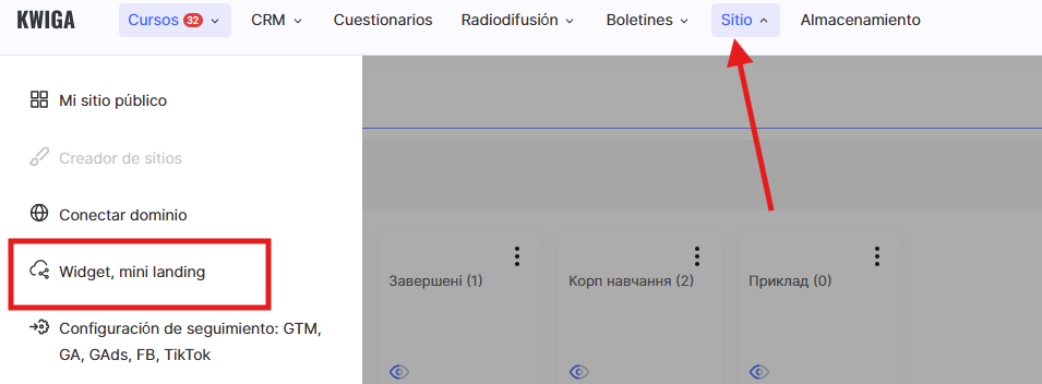 - Rastrear visitas desde la página de aterrizaje a través del widget
