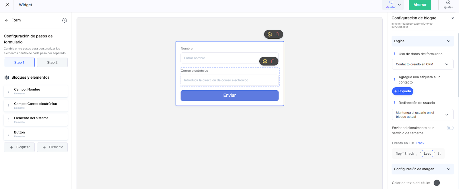 Cómo crear un widget eficaz para recopilar datos de contacto: configuración de campos, formularios de varios pasos, aplicación de datos y opciones de publicación.