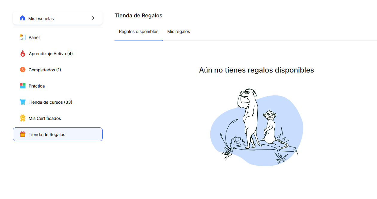 La plataforma admite tanto la entrega automática de regalos digitales (el alumno recibe acceso inmediato tras el canje de puntos) como la confirmación manual por parte del administrador en el caso de productos físicos o servicios que requieren coordinación. Tras recibir el regalo, el participante obtiene un mensaje de felicitación y una notificación a través del icono de campana en su perfil.