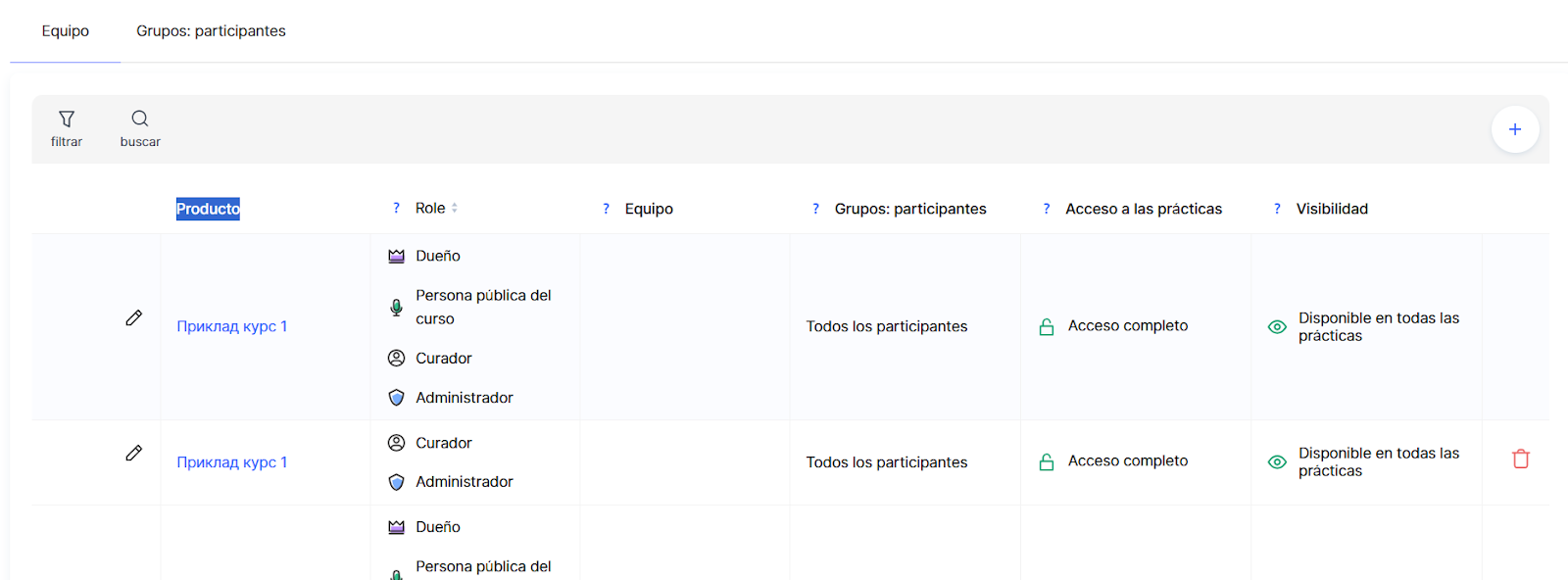 Los usuarios están vinculados a productos educativos específicos y pueden trabajar en varios cursos simultáneamente. Por ejemplo, un mentor puede dirigir un curso de nivel inicial y al mismo tiempo trabajar con estudiantes avanzados en otro curso, teniendo diferentes niveles de acceso en cada uno de ellos.