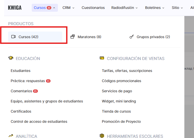 Ir al menú de Cursos