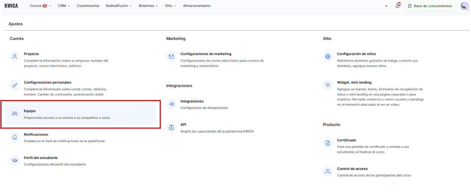 Selecciona la sección Equipo – la pestaña Usuarios.