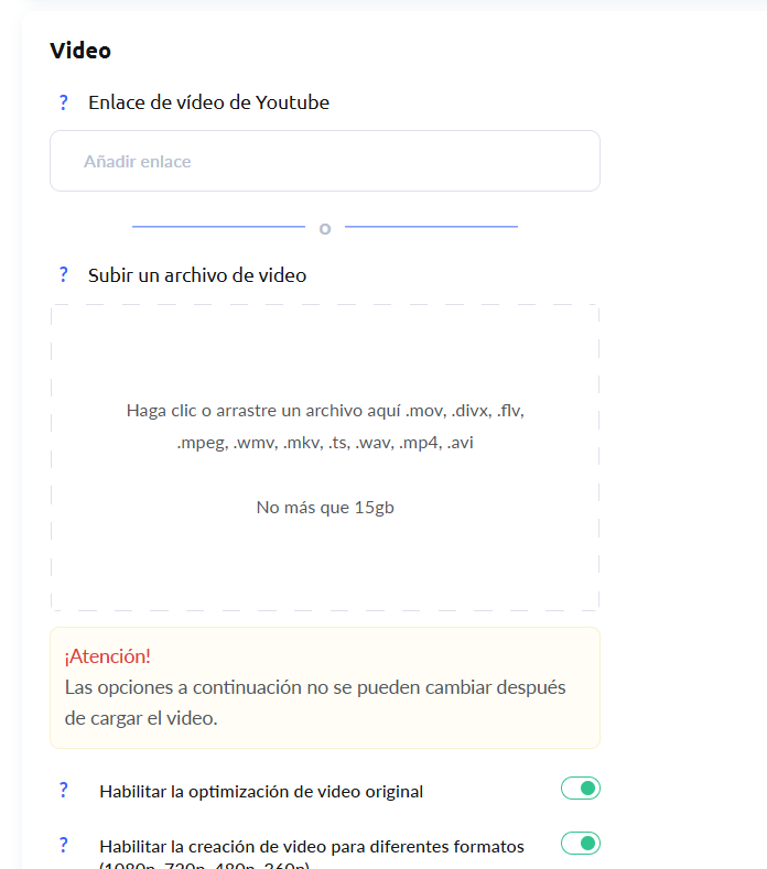 Haz clic en el botón “+” y elige Desde la computadora o desde la Biblioteca Multimedia de KWIGA. Puedes subir archivos de hasta 1 GB en los siguientes formatos: .mov, .mp4, .3gp, .divx, .flv, .mpeg, .mpg, .wmv, .mkv.