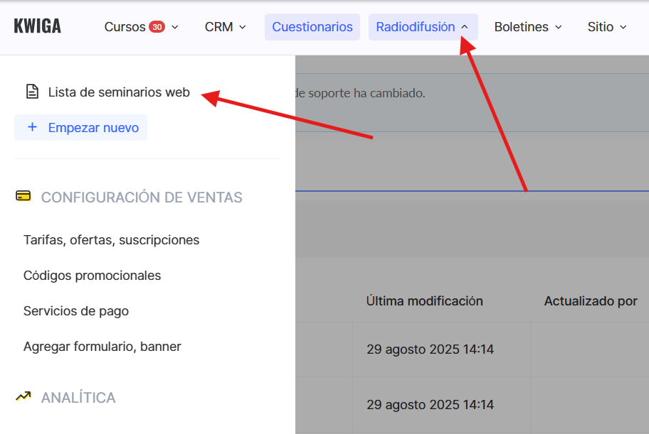 - Cómo organizar un webinar en Kwiga a través de YouTube Live