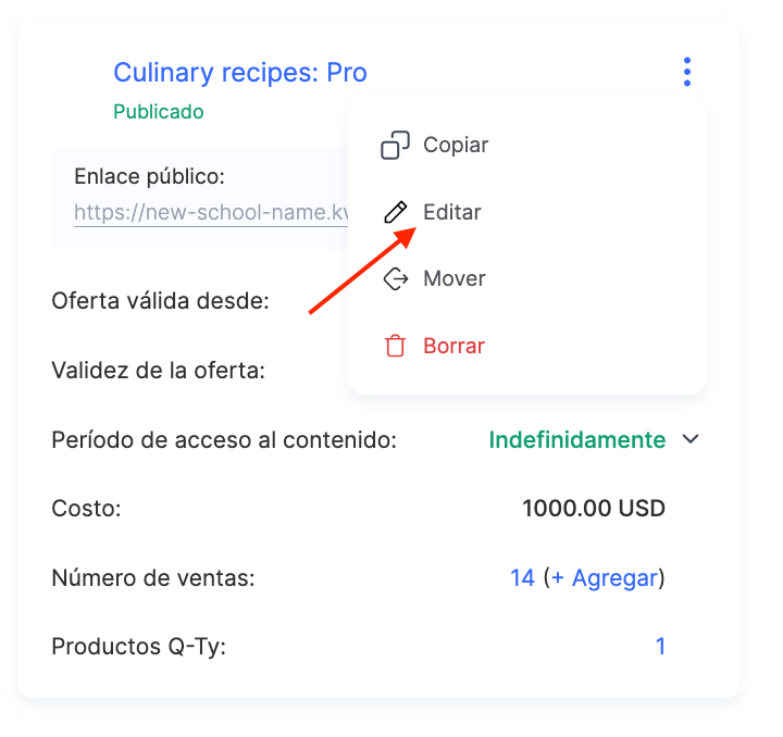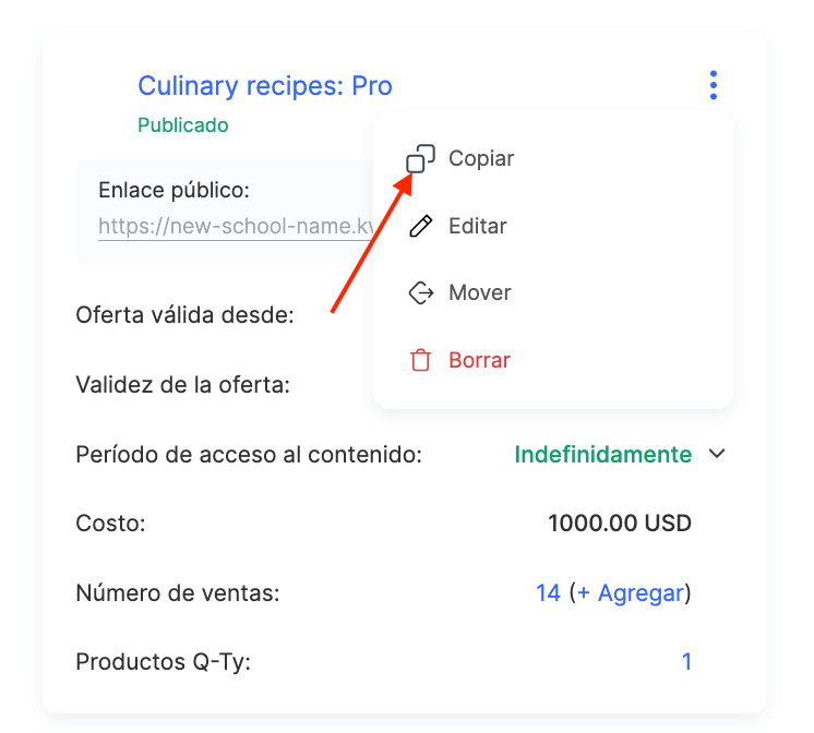 ¿Habrá cambios en el curso en sí? Por ejemplo, cambios en los vídeos, el contenido de las lecciones, las tareas, el diseño o las sesiones programadas de Zoom para las cuales luego se subieron grabaciones, o si deseas actualizar determinadas lecciones, introducciones de vídeo, etc. En este caso, debes crear una copia del curso y nuevas ofertas.