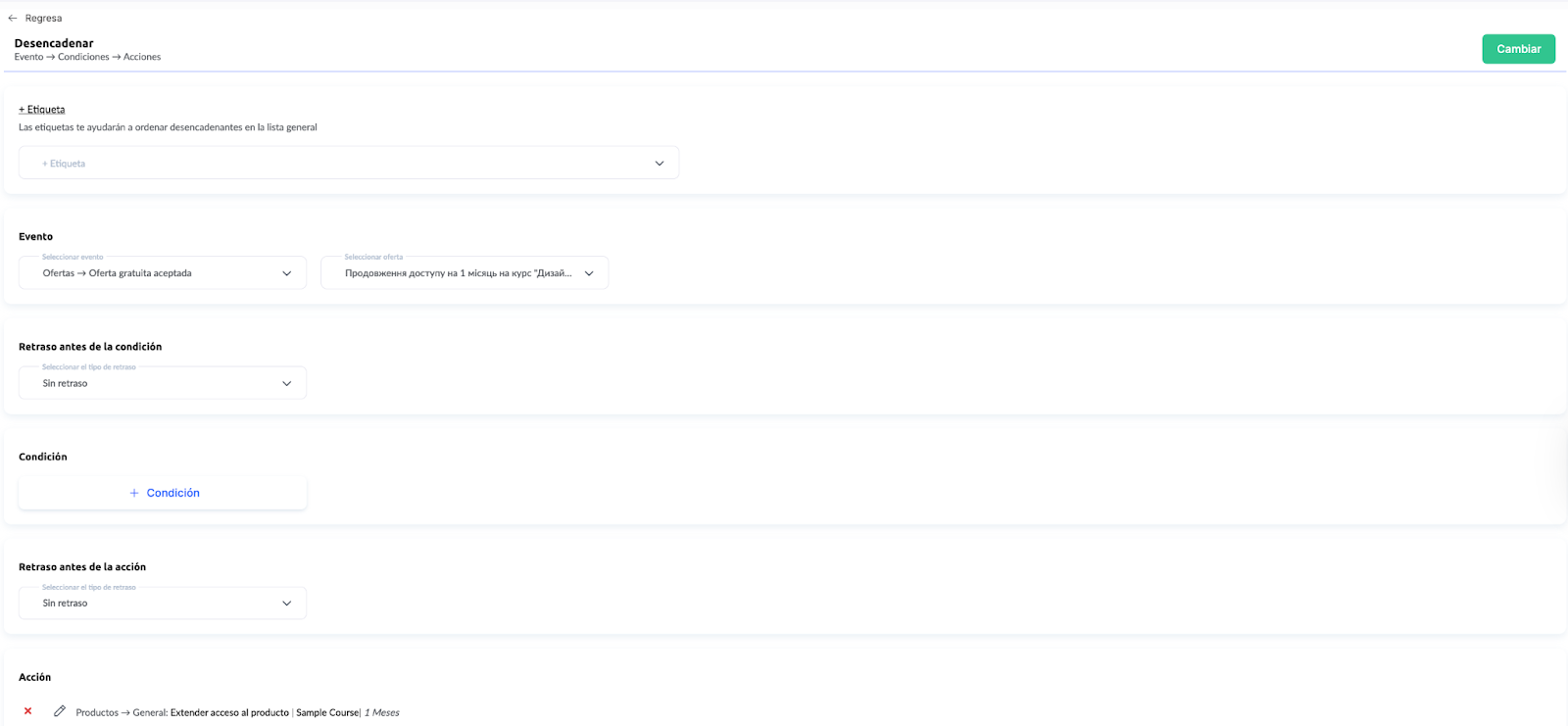 Crear una automatización que se active tras un pago exitoso y extienda el acceso al curso por el período requerido.